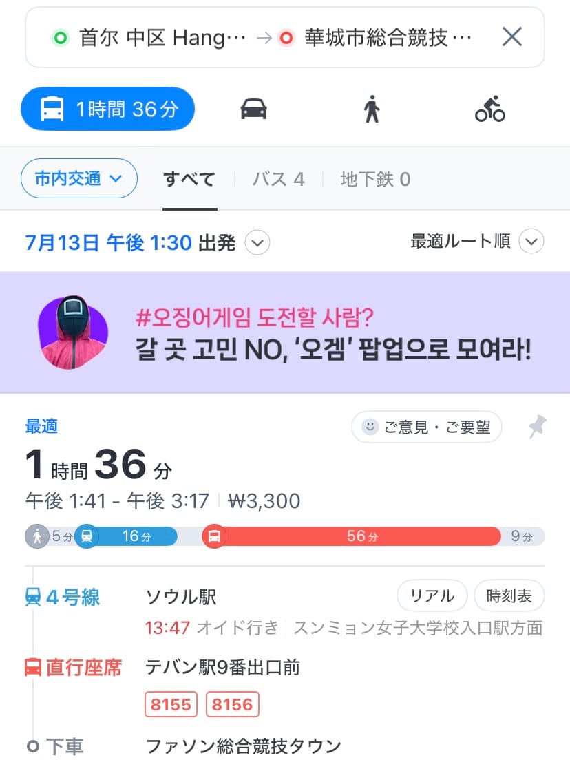 韓国旅行中の移動計画を立てるのに欠かせない方法ですので、ぜひ旅行前から操作をチェックしてマスターしていってくださいね^^