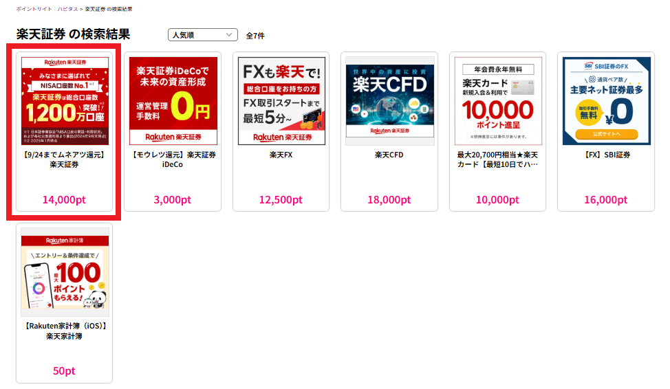 続いて、ハピタスを経由して楽天証券の口座開設を申し込む手順の例を画像で見ていきましょう。