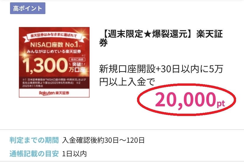 数千~万単位のポイントを獲得できる証券会社も時々あります。
