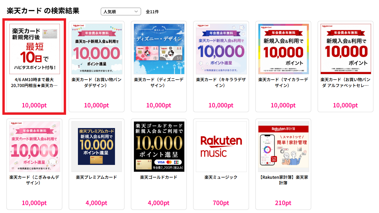 ハピタスにログインし、楽天カードの広告リンクから楽天カードのサイトに進んで発行申し込みをすれば、カード発行後に 10,700ポイントを貰えます!