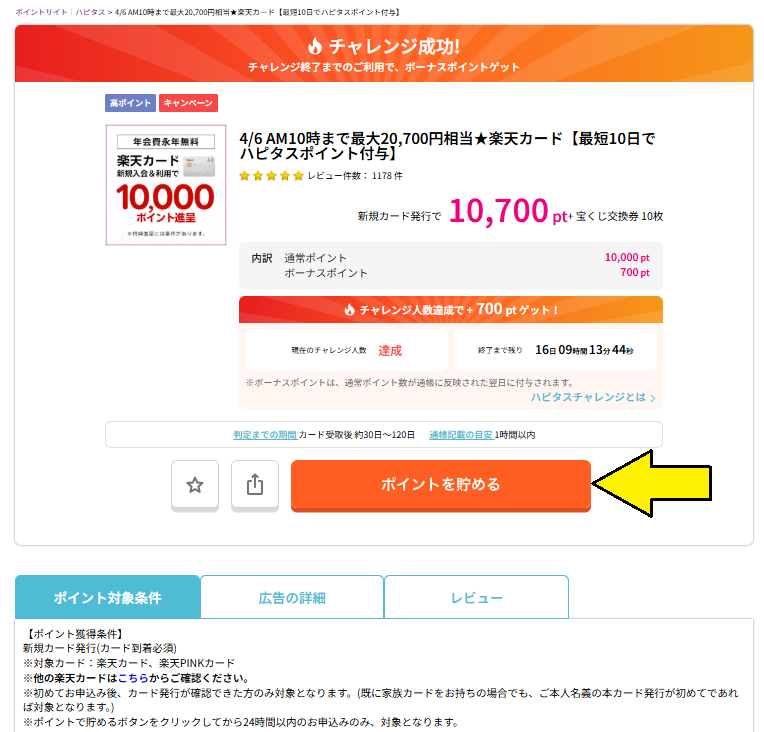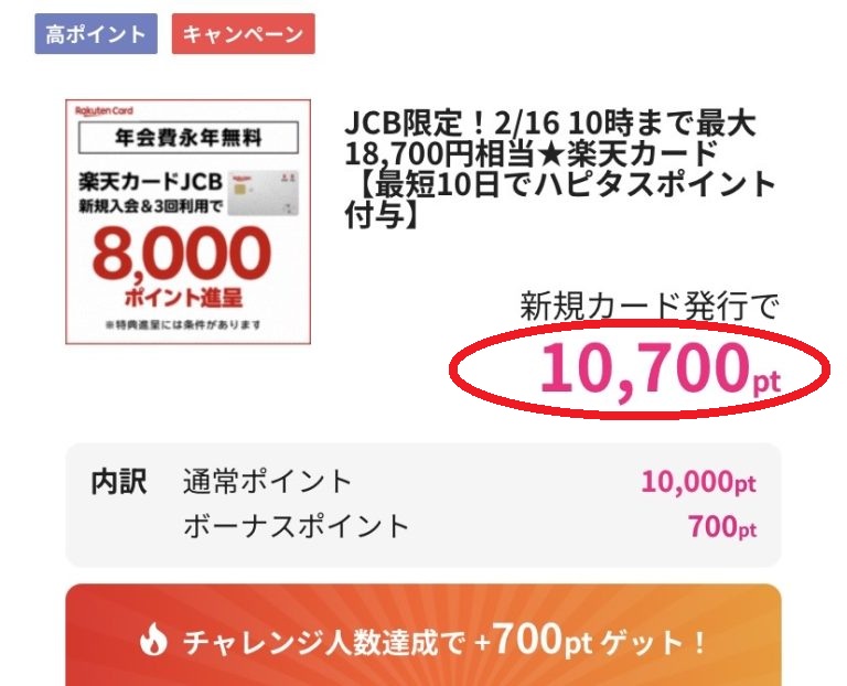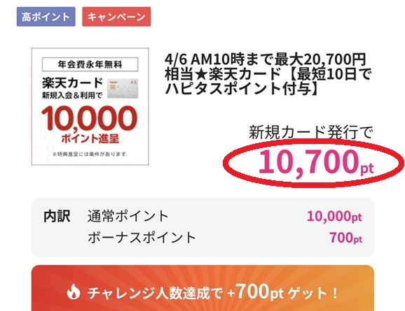 楽天カードの発行で獲得できるハピタスの10,700ポイントは、