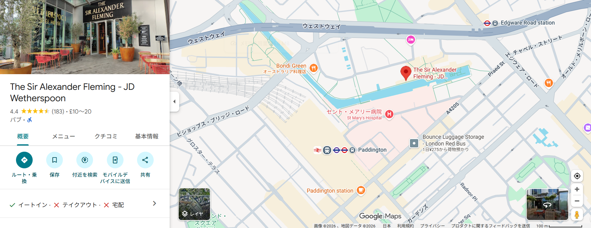 パディントン駅の北東にある「ザ・サー・アレクサンダー・フレミング」。