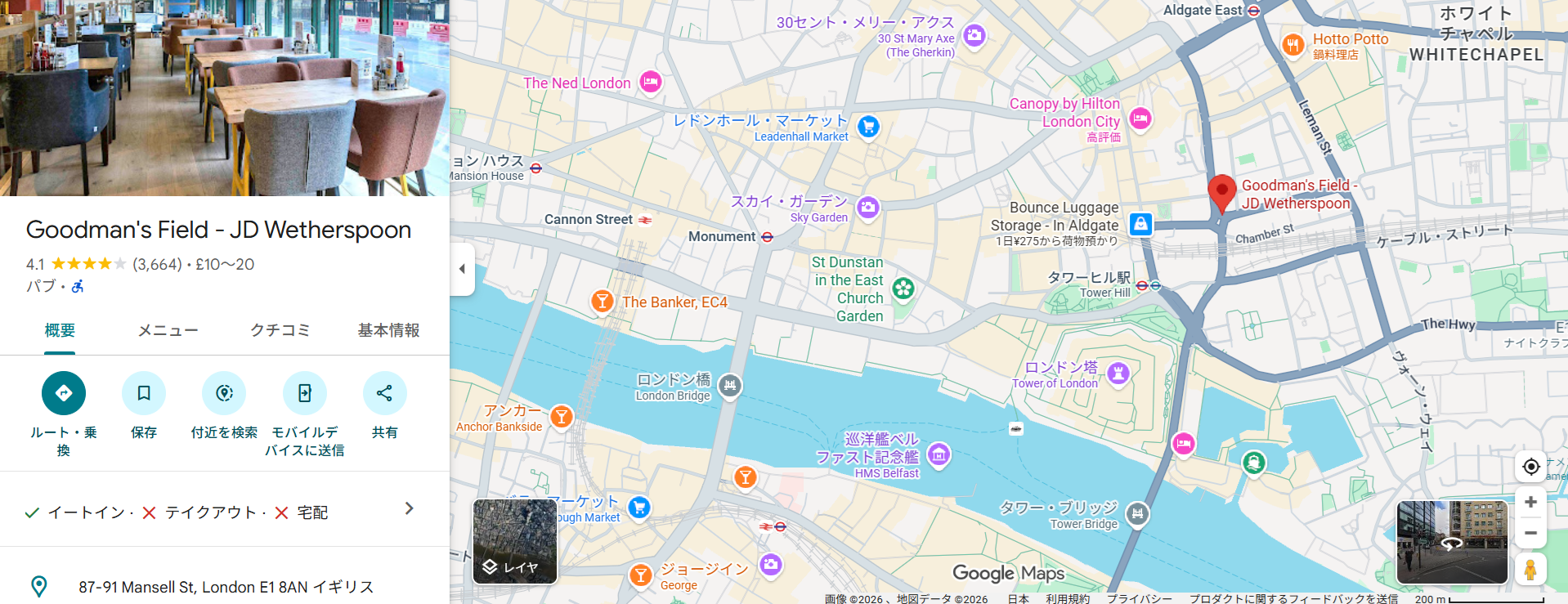 テムズ川に架かる名所・タワーブリッジから徒歩10分くらいの所にある「ザ・グッドマンズ・フィールド」です。
